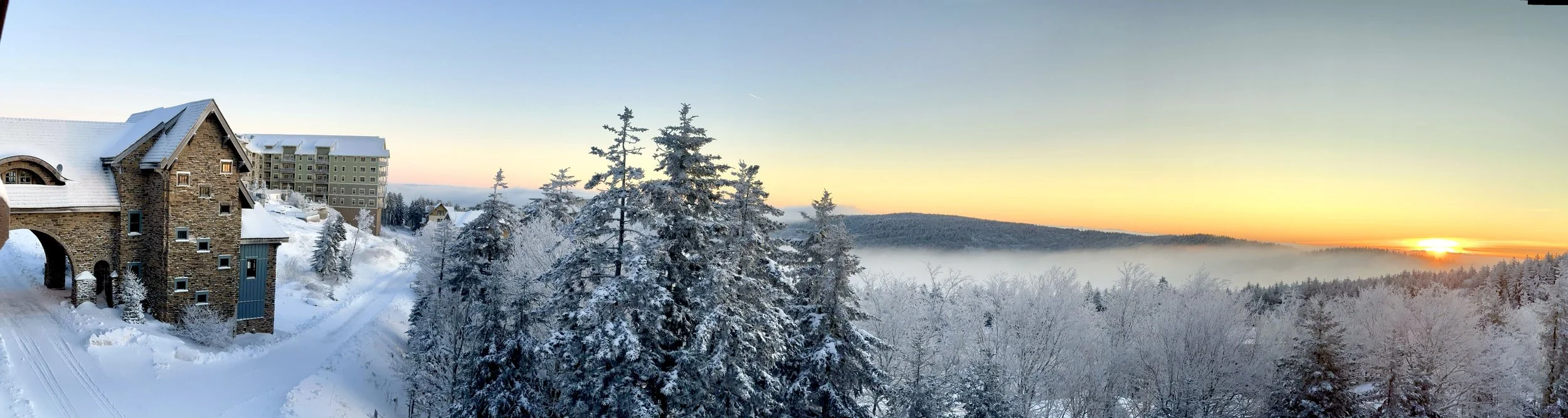Snowshoe is also one of the only resorts where the village sits at the top of the mountain. your first run of the day is immediate without needing to wait for the chair lift.